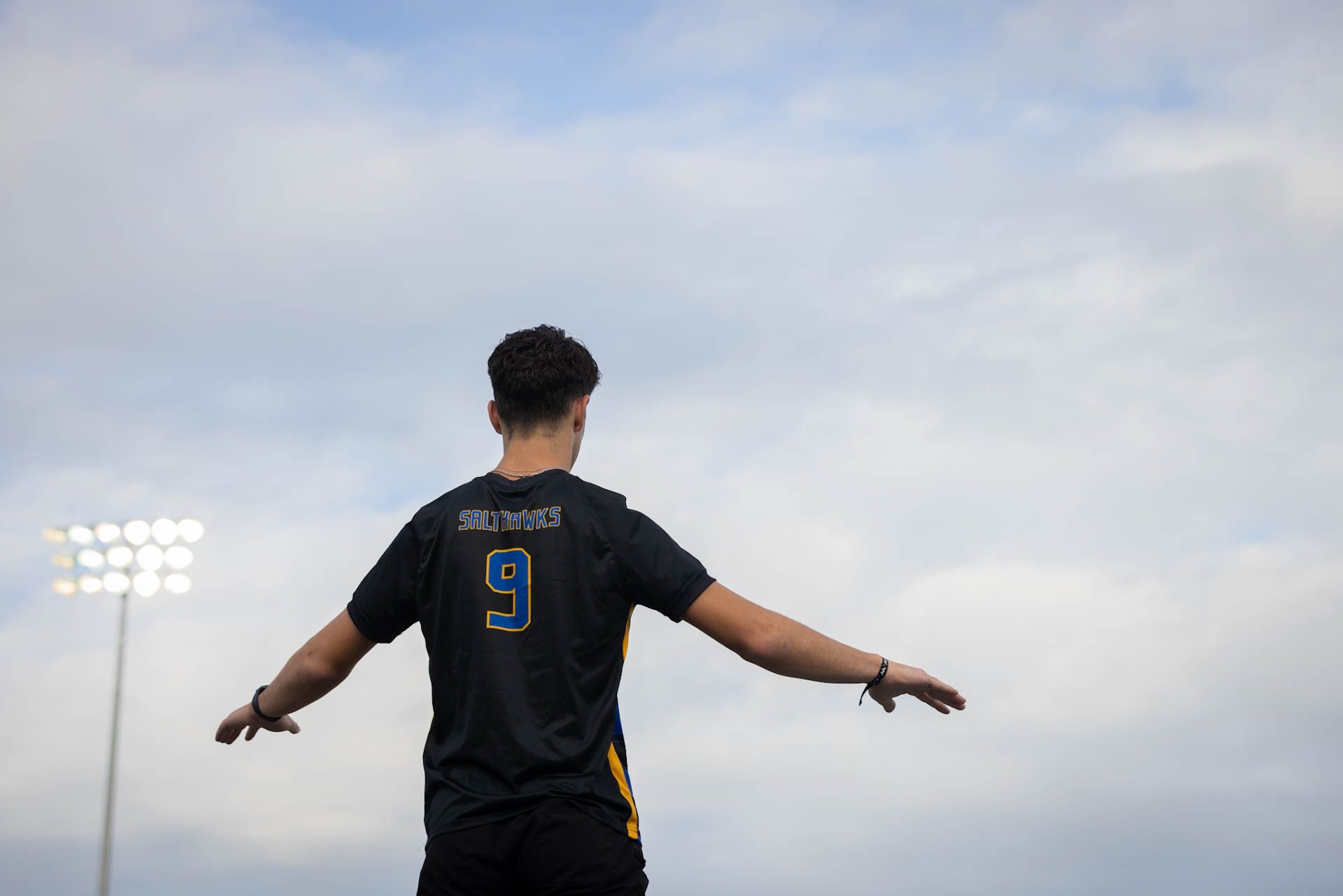 The Hutchinson High School Salthawks take the field for their scrimmage as cheerleaders, staff, family and friends watch from the sidelines. CREDIT CHARISSA GRAVES | THE HUTCHINSON TRIBUNE